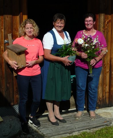 Am Sonntag, 3. Oktober fand nach coronabedingter langer Auszeit wieder ein Fest auf der Streuobstwiese statt. Nach den vielen Besucher zu urteilen, wollten sich die Leute wieder einmal treffen und einen gemütlichen Nachmittag verbringen. Auch das herrliche Wetter lockte viele ins Freie. Im Schatten unter den Sonnenschirmen ließen sie sich die Apfelkuchen und ein Haferl Kaffee schmecken. Dazu spielten die drei Musikanten und so entstand eine entspannte, fröhliche Stimmung. Da war es auch kein Wunder, dass alle Kuchen weggingen wie sprichwörtlich warme Semmeln und schon bald alles vergriffen war. Einer fachkundigen Jury aus 3 Personen fiel es dann nicht leicht, welcher Kuchen prämiert werden sollte. Aber nach langer Diskussion und immer wieder Probieren standen die Sieger fest. Als Preise gab es einen Nistkasten, ein Blumengesteck und der 1. war einen Blumenstrauß mit Gutschein, die den überraschten Gewinnern übergeben wurden. Viele Informationen bekam man dann bei der Führung von Hans Fröschl über die Streuobstwiese. Fazit: wieder ein gelungenes Fest auf der Streuobstwiese