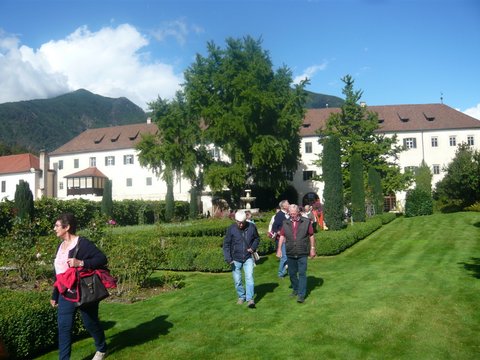 45 gutgelaunte und erwartungsfreudige Teilnehmer fanden sich am 23.9.2023 bereits um 7.00 Uhr beim Rathaus ein, um mit unserem Hans Zehentmair als Busfahrer nach Südtirol zu fahren. In der Nähe von Innsbruck gab es dann das schon bekannte und bewährte Gartlerfrückstück mit Kaffee, Butterbrezen und Nussschnecken. Dann ging es weiter Richtung Brenner. Welch ein Glück, das Regenwetter war verzogen und so konnten wir Kloster Neustift mit all seiner Schönheit genießen: die Stiftskirche, ein Juwel des süddeutschen Rokokos, die einzigartige Anlage, den Friedhof und natürlich den Obst- und Kräutergarten. In Brixen erwartete uns dann eine Stadtführung, in der nicht nur die historischen Gebäude sondern auch viel Wissenswerten darüber vermittelt wurde. Bevor der Regen einsetzte, stiegen wir in den Bus, um unser Quartier zu erreichen. Im Bergschlössel Lüsen wurden wir mit einem köstlichen Abendessen verwöhnt. Das Frühstücksbüffet übertraf all unsere Erwartungen. Aber schon mussten wir weiter. Unser nächstes Ziel der Rodoar-Hof stand auf dem Programm. Der Besitzer, ein Bioweinbauer erwartete uns auf seinem Hof und zeigte uns seinen Weinkeller, bevor es zur Verkostung ging. Wie gut schmeckte der Wein, dazu Brot, Speck und Käse. Auf der Heimfahrt machten wir dann noch in Innsbruck bei der Berg- Isel-Schanze Halt. Einige fuhren sogar hinauf uns sahen sogar einen Skispringer. Aber der Blick über Innsbruck war für alle überwältigend. Nach dieser letzten Pause ging es zurück nach Edling, wo wir gut gelaunt gegen 19.00 Uhr ankamen. Ein herrlicher Ausflug auch Dank unseres Fahrers und der guten Organisation.