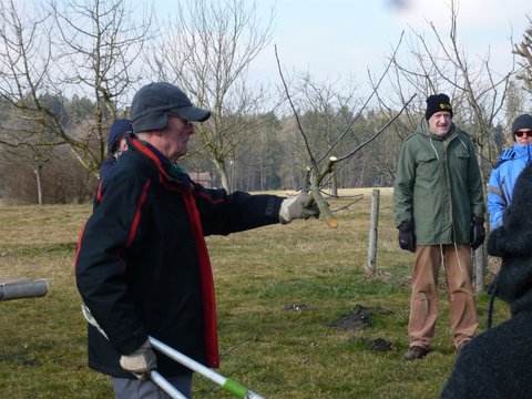 Über 20 Teilnehmer fanden sich am Samstag, 05.März trotz eisiger Temperatur auf der Streuobstwiese ein, um all das zu erlernen oder auch das Wissen aufzufrischen, was bei einem Erhaltungsschnitt zu beachten ist. Nachdem Hans Fröschl zuerst theoretische Grundkenntnisse erklärt hatte, ging es dann in zwei Gruppen auf die Wiese, um von Josef Langgaßner und Hans Fröschl gezeigt zu bekommen, wie ein Baum fachgerecht geschnitten wird. Ob Auslichtung, Einkürzen, was Leitäste oder Fruchtansätze sind, kein Thema blieb ausgespart. Natürlich gingen dabei beide Kursleiter auf die Fragen der Teilnehmer ein und so kehrten nach drei Stunden alle mit vielen nützlichen Erkenntnissen heim, um dieses Wissen in den nächsten Tagen im eigenen Garten umzusetzen. Vielen Dank Hans Fröschl und Josef Langgaßner für diesen interessanten Praxiskurs.