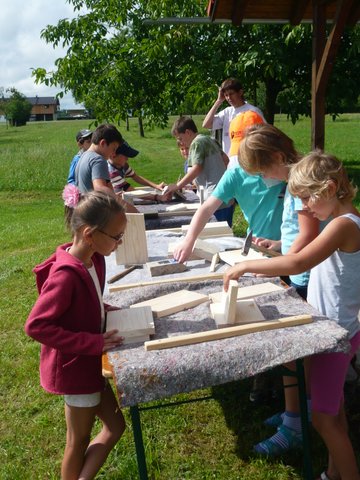 „Fabelhafte Wesen aus Obst und Gemüse“ hieß das Thema, das Friederike Bernhard im Rahmen des Edlinger Ferienprogramm am Donnerstag, 03. August auf der Streuobstwiese anbot. Sehen Sie selbst, wie viel Spaß es den Kindern machte, und was dabei herauskam. Eine weitere Aktion fand am 09. August ebenfalls auf der Streuobstwiese statt. Mit Hilfe von Leonhard Krebs bauten die Kinder Nisthilfen aus bereits zugeschnittenen Brettern. Es wurde geschraubt, genagelt und zusammengesetzt und so entstanden Vogelhäuser, die die Kinder mit heim nehmen durften.