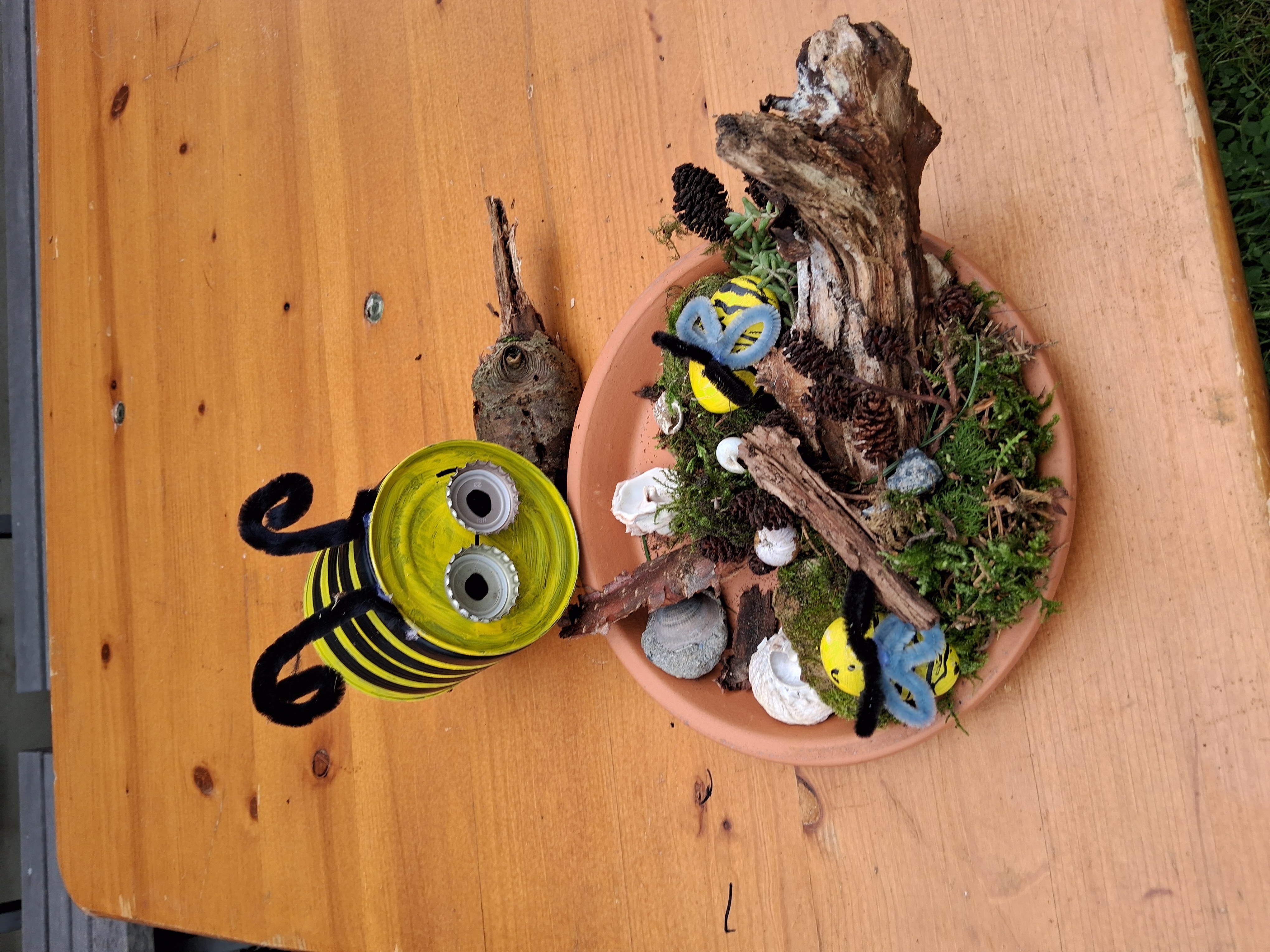 Auch heuer machte der Obst- und Gartenbauverein Edling am Ferienprogramm der Gemeinde mit. „Bienen“ war das Motto, unter dem dieser Tag auf der Streuobstwiese stand. Unter der Leitung von Irmi Gottwald und Melanie Bichler lernten die Kinder nicht nur alles Wissenswerte über Bienen, sondern gestalteten dann Ihre eigenen „Bienen“ und Wassertränken. Dazu hatten Sie den erfahrenen Imker Georg Schex eingeladen, der einen Bienenstock mitgebracht hatte. Nach dieser „Theorie“ ging es ans Basteln. Dosen wurden bemalt und zu Bienen, Steine gesucht und bemalt und mit anderen Dingen zu Wasserstellen. Voller Eifer waren alle dabei und es entstanden herrliche Kunstwerke.