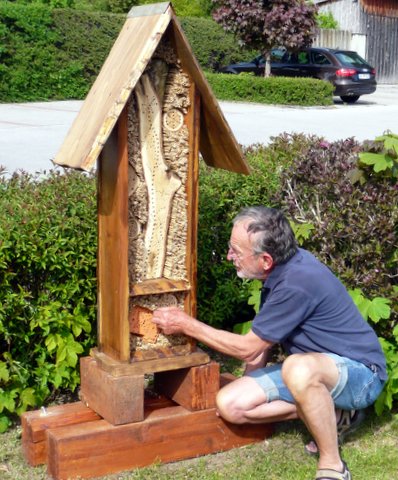 Nisthilfen für WildbienenDer Obst- und Gartenbauverein Edling hat ein Insektenhotel erworben und in Absprache mit unserem Bürgermeister Herrn Schnetzer und dem Pfarramt es am 8. Mai vor dem Parkplatz beim Friedhof aufgestellt und später einen Blühstreifen angelegt. Denn unsere Wildbienen gehören zu den bedrohten Tierarten. Ein Insektenhaus bietet Nisthilfe, Wohnraum und Winterquartier für viele Nutzinsekten, z. B.: Wildbienen, solitäre Wespen, Florfliegen, Ohrwürmer, Marienkäfer usw.