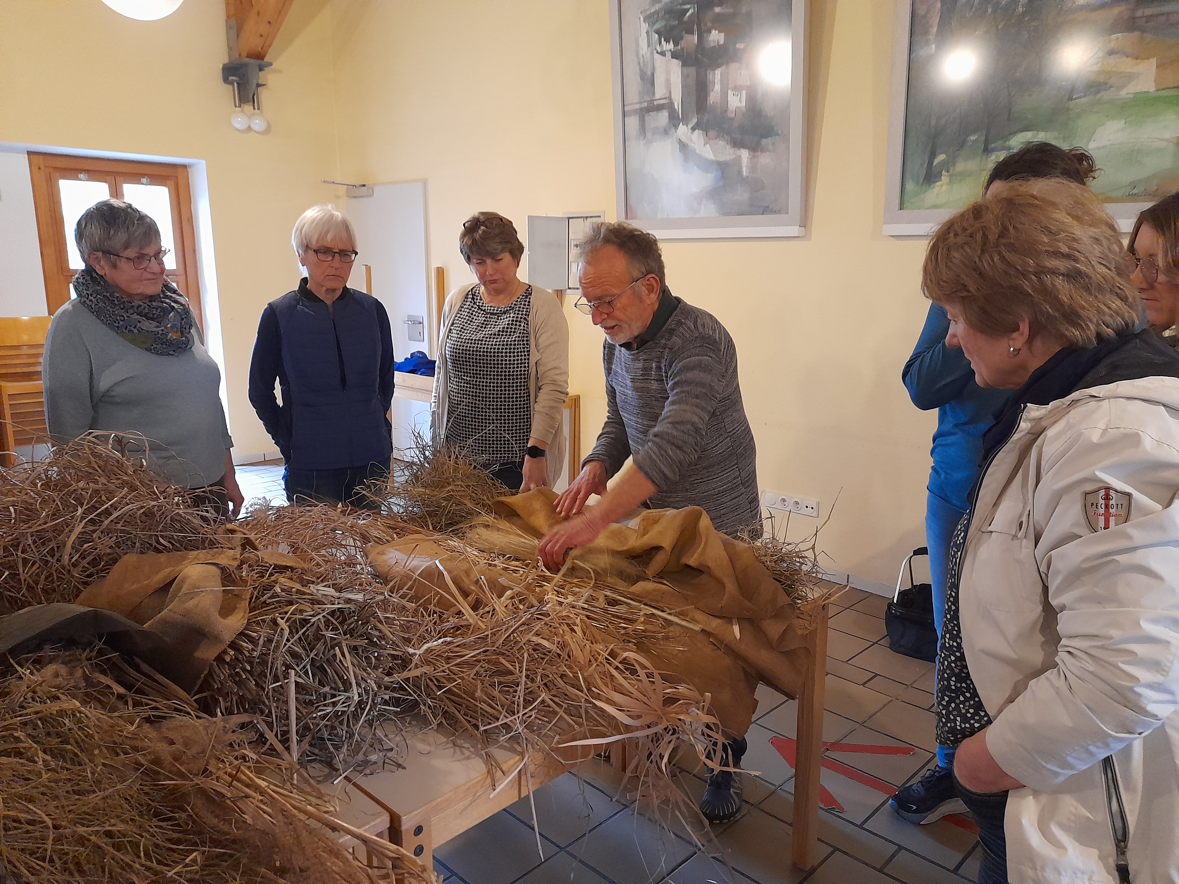 Leonhard Krebs bot am 23. März 2024 einen Kurs an, bei den man lernte, wie kleine Körbe aus Gras und Stroh hergestellt werden. Dazu hatte er jede Menge verschiedenes Material ins Krippnerhaus mitgebracht und so konnten nach einer kurzen Erklärung die Teilnehmer beginnen, selbst eigene Körbe zu wickeln.