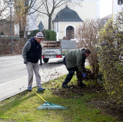 Am Samstag, 18. März 2023 fand diese jährliche Aktion des Gartenbauvereins statt, bei der rund um die Kirche Sträucher geschnitten und aufgeräumt wurde. Wieder hatten sich fleißige Helfer gefunden und halfen mit. Sogar das Wetter spielte heuer mit und so war bald alles erledigt und man ließ sich im Pfarrheim das Mittagessen – Schnitzel mit Kartoffelsalat - schmecken. Ein herzliches Dankeschön an alle, die geholfen haben.