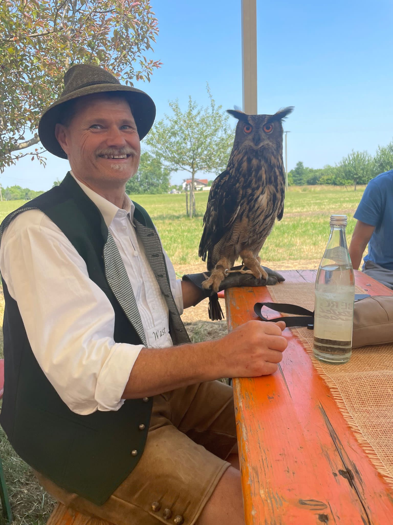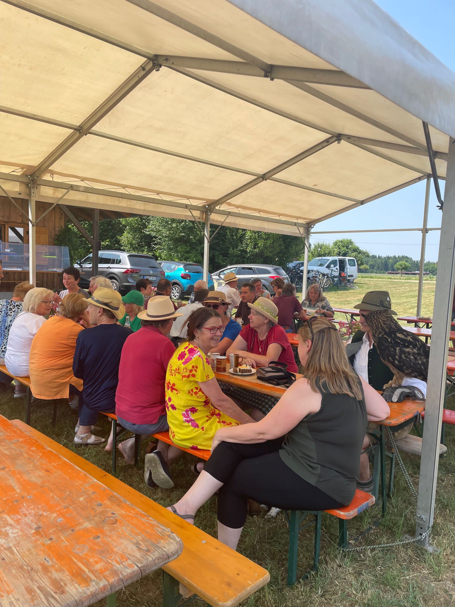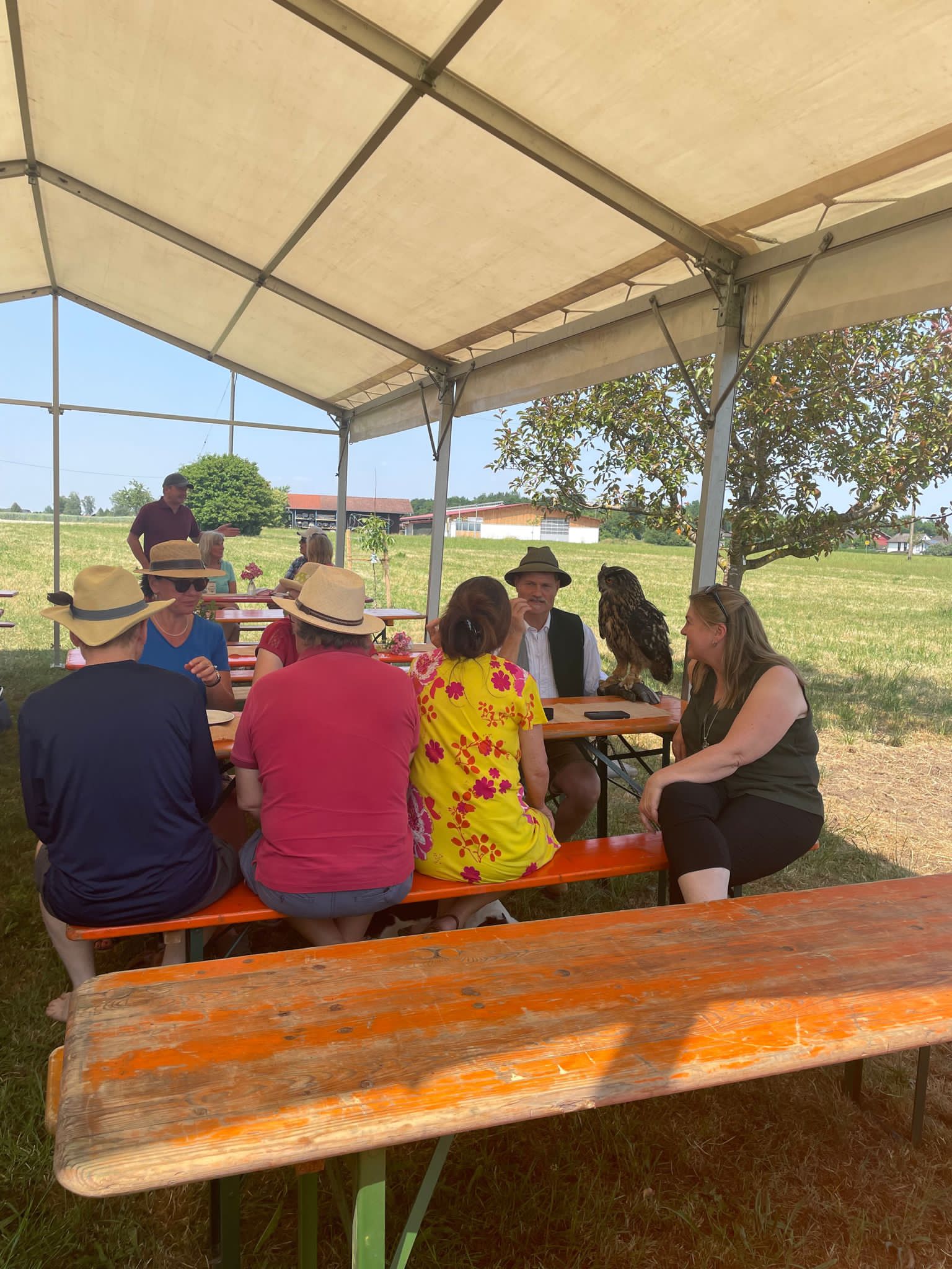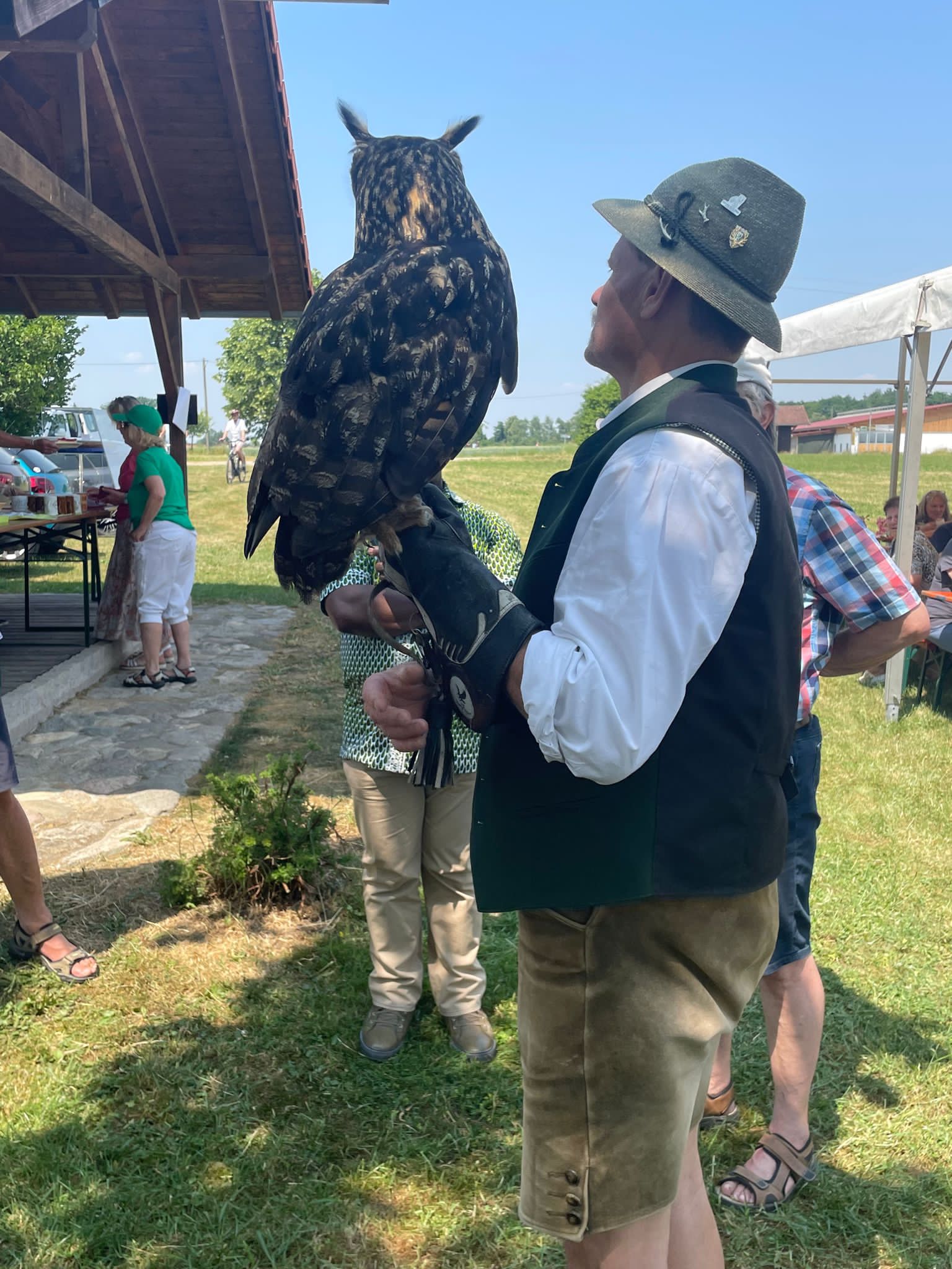 Am Sonntag, 18. Juni feierte der Obst- und Gartenbauverein Edling sein Sommerfest auf der Streuobstwiese und viele Besucher ließen sich diesen Termin nicht entgehen. Musikanten spielten auf. Köstliche Kuchen hatten fleißige Mitglieder gebacken und alle ließen sie sich schmecken Auch eine Führung durch die Streuobstwiese wurde angeboten. Besondere Aufmerksamkeit erregte aber ein Falkner, der mit seinem Uhu gekommen war und interessantes über ihn erzählte.