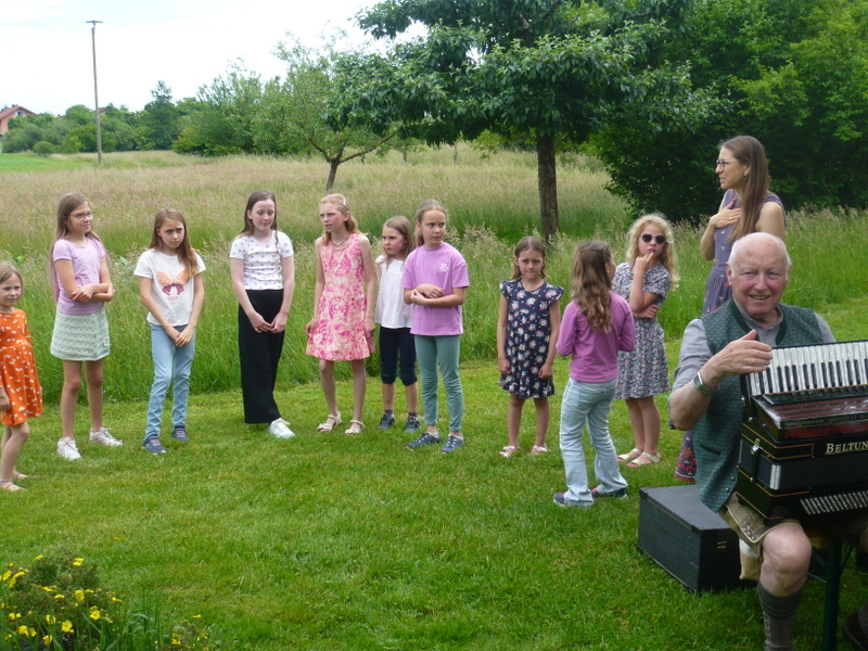 Das Sommerfest des Gartenbauvereins in Edling fand wieder großen Anklang – findet es doch auch an einem besonderen Ort statt: Der Streuobstwiese. Schon von der Straße sah man den neu aufgestellten Fahnenmasten – mit Bayernfahne, versteht sich – und so wusste jeder, dass und wo genau der Gartenbauverein sein jährliches Fest feiert. Die zahlreichen Besuchern erwartete ein reichhaltiges Kuchenbüfett, zu dem dankenswerter Weise wieder viele fleißige Kuchenbäckerinnen beigetragen hatten. Da war die Auswahl schwer. Die „Fünf-Huat-Musi“ spielte auf und bekam dafür einen herzlichen Applaus – ebenso der Kinderchor um Leiterin Frau Strobel. Nach ihrem Auftritt hatten es die Kinder eilig, denn sie wollten auch unbedingt am Bastelangebot teilnehmen. Voller Eifer formten die jungen Gäste aus der besonderen Knetmasse mit Ausstechformen Herzen, Kreise und anderes und verzierten diese mit Zahnstochern. Dann wurden diese Teile neben Kugeln und Muscheln auf Schnüre gezogen und an einem Stück Holz aufgehängt. So entstand ein herrliches Windspiel. Der Andrang war groß bei Irmi Gottwald, die mit den Kindern diese tolle Bastel-Aktion machte. Etwa 30 Besucher versuchten sich bei einem Quiz und ihr Wissen wurde herausgefordert. Wer weiß schon, wie die Blume des Jahres heißt, zu welcher Familie die Erdbeere gehört oder wie viele Nussbäume auf der Streuobstwiese stehen? Elisabeth Schex teilte dann die richtigen Lösungen mit. Nur eine Person konnte alle der zehn Fragen richtig beantworten und erhielt dafür als ersten Preis einen Nistkasten. Die zwei weiteren Preise wurden aus den übrigen Teilnehmern ausgelost. Die Musikanten unter dem Nussbaum sorgten für eine wunderbare Stimmung, so dass viele Gäste noch lange gemütlich beisammen saßen und immer wieder betonten, wie schön doch dieser Nachmittag sei …
