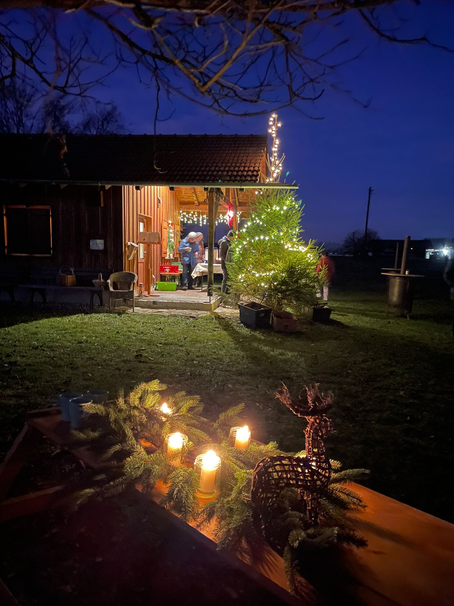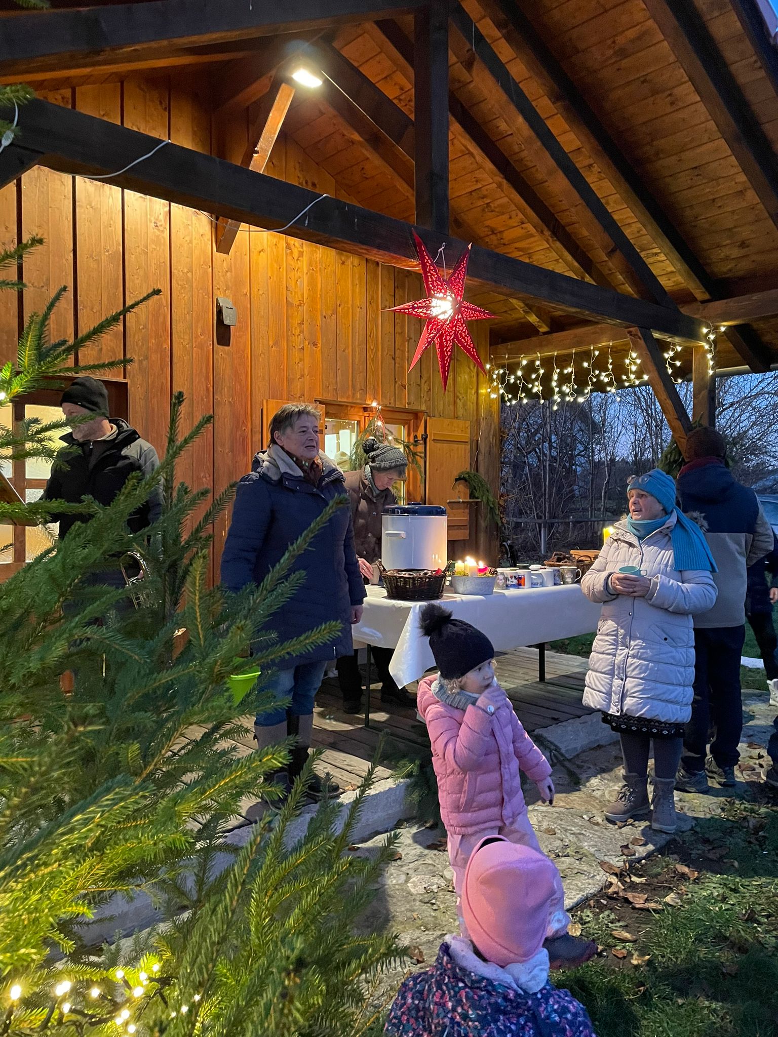 Am 17.12. fand wieder die Waldweihnacht auf der Streuobstwiese statt. Vor der Hütte stand schon ein Christbaum und das Feuer brannte in der Feuerschale. Weihnachtliche Musik erklang und in der Hütte hörten die Kinder eine besinnliche Geschichte. Dann machten sich die Kinder mit ihren Laternen auf den Weg über die vielen Lichtern versehene Wiese, um für die Tiere Meisenknödel aufzuhängen. Natürlich gab es wieder kostenlos Glühwein, Kinderpunsch, Lebkuchen und frisch geröstete Maroni. Den dafür gespendete Betrag erhielt die Kindergruppe des Vereins „die Edlinger Wühlmäuse“.