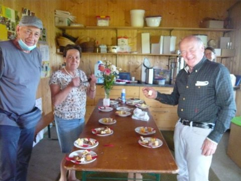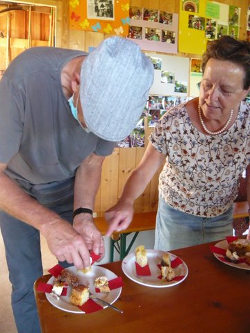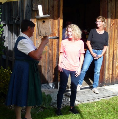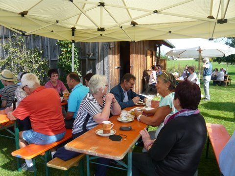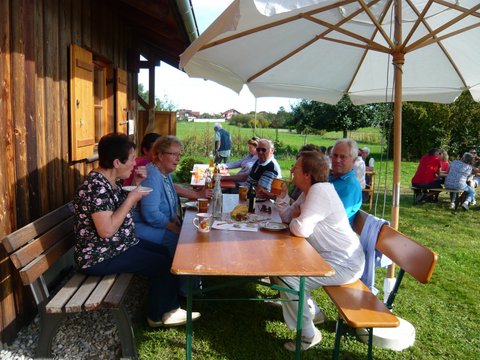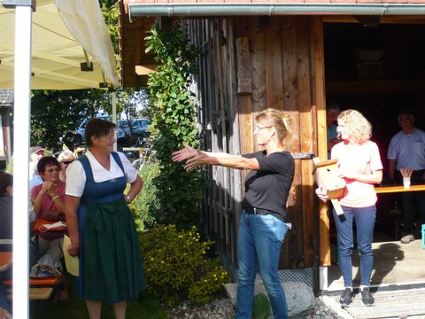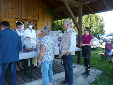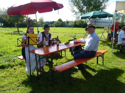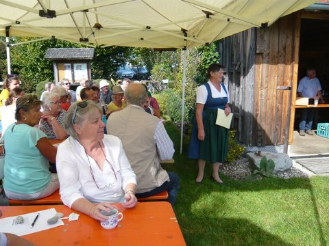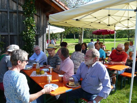 Am Sonntag, 3. Oktober fand nach coronabedingter langer Auszeit wieder ein Fest auf der Streuobstwiese statt. Nach den vielen Besucher zu urteilen, wollten sich die Leute wieder einmal treffen und einen gemütlichen Nachmittag verbringen. Auch das herrliche Wetter lockte viele ins Freie. Im Schatten unter den Sonnenschirmen ließen sie sich die Apfelkuchen und ein Haferl Kaffee schmecken. Dazu spielten die drei Musikanten und so entstand eine entspannte, fröhliche Stimmung. Da war es auch kein Wunder, dass alle Kuchen weggingen wie sprichwörtlich warme Semmeln und schon bald alles vergriffen war. Einer fachkundigen Jury aus 3 Personen fiel es dann nicht leicht, welcher Kuchen prämiert werden sollte. Aber nach langer Diskussion und immer wieder Probieren standen die Sieger fest. Als Preise gab es einen Nistkasten, ein Blumengesteck und der 1. war einen Blumenstrauß mit Gutschein, die den überraschten Gewinnern übergeben wurden. Viele Informationen bekam man dann bei der Führung von Hans Fröschl über die Streuobstwiese. Fazit: wieder ein gelungenes Fest auf der Streuobstwiese