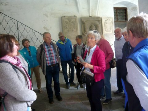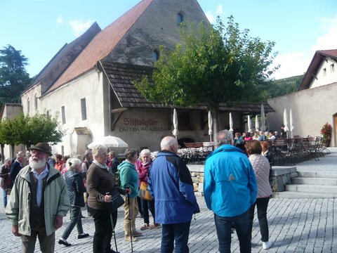 45 gutgelaunte und erwartungsfreudige Teilnehmer fanden sich am 23.9.2023 bereits um 7.00 Uhr beim Rathaus ein, um mit unserem Hans Zehentmair als Busfahrer nach Südtirol zu fahren. In der Nähe von Innsbruck gab es dann das schon bekannte und bewährte Gartlerfrückstück mit Kaffee, Butterbrezen und Nussschnecken. Dann ging es weiter Richtung Brenner. Welch ein Glück, das Regenwetter war verzogen und so konnten wir Kloster Neustift mit all seiner Schönheit genießen: die Stiftskirche, ein Juwel des süddeutschen Rokokos, die einzigartige Anlage, den Friedhof und natürlich den Obst- und Kräutergarten. In Brixen erwartete uns dann eine Stadtführung, in der nicht nur die historischen Gebäude sondern auch viel Wissenswerten darüber vermittelt wurde. Bevor der Regen einsetzte, stiegen wir in den Bus, um unser Quartier zu erreichen. Im Bergschlössel Lüsen wurden wir mit einem köstlichen Abendessen verwöhnt. Das Frühstücksbüffet übertraf all unsere Erwartungen. Aber schon mussten wir weiter. Unser nächstes Ziel der Rodoar-Hof stand auf dem Programm. Der Besitzer, ein Bioweinbauer erwartete uns auf seinem Hof und zeigte uns seinen Weinkeller, bevor es zur Verkostung ging. Wie gut schmeckte der Wein, dazu Brot, Speck und Käse. Auf der Heimfahrt machten wir dann noch in Innsbruck bei der Berg- Isel-Schanze Halt. Einige fuhren sogar hinauf uns sahen sogar einen Skispringer. Aber der Blick über Innsbruck war für alle überwältigend. Nach dieser letzten Pause ging es zurück nach Edling, wo wir gut gelaunt gegen 19.00 Uhr ankamen. Ein herrlicher Ausflug auch Dank unseres Fahrers und der guten Organisation.