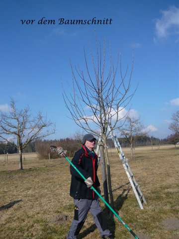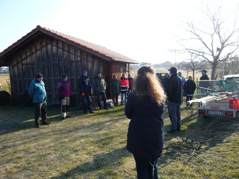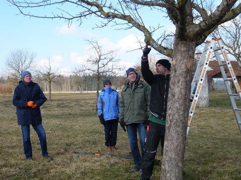 Über 20 Teilnehmer fanden sich am Samstag, 05.März trotz eisiger Temperatur auf der Streuobstwiese ein, um all das zu erlernen oder auch das Wissen aufzufrischen, was bei einem Erhaltungsschnitt zu beachten ist. Nachdem Hans Fröschl zuerst theoretische Grundkenntnisse erklärt hatte, ging es dann in zwei Gruppen auf die Wiese, um von Josef Langgaßner und Hans Fröschl gezeigt zu bekommen, wie ein Baum fachgerecht geschnitten wird. Ob Auslichtung, Einkürzen, was Leitäste oder Fruchtansätze sind, kein Thema blieb ausgespart. Natürlich gingen dabei beide Kursleiter auf die Fragen der Teilnehmer ein und so kehrten nach drei Stunden alle mit vielen nützlichen Erkenntnissen heim, um dieses Wissen in den nächsten Tagen im eigenen Garten umzusetzen. Vielen Dank Hans Fröschl und Josef Langgaßner für diesen interessanten Praxiskurs.
