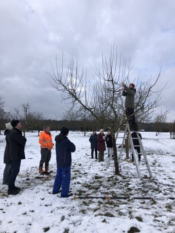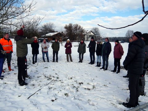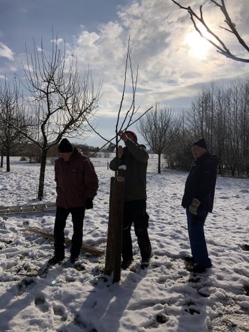 Am Samstag, 25. Februar 2023 bot der Obst- und Gartenbauverein einen Baumschneidekurs mit Herrn Josef Langgaßner an. Trotz widrigem Wetter waren fast 20 interessierte Baumbesitzer/innen gekommen, um die Kunst des Baumschneidens an Obstbäumen zu erlernen. Dabei ging Herr Langgaßner besonders auf den Erziehungsschnitt ein. Bereitwillig beantwortete er die gestellten Fragen und so konnten alle viele neue Erkenntnisse mit nach Hause nehmen, um sie daheim umzusetzen.