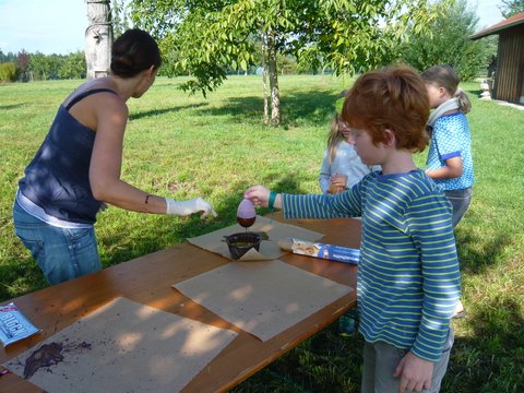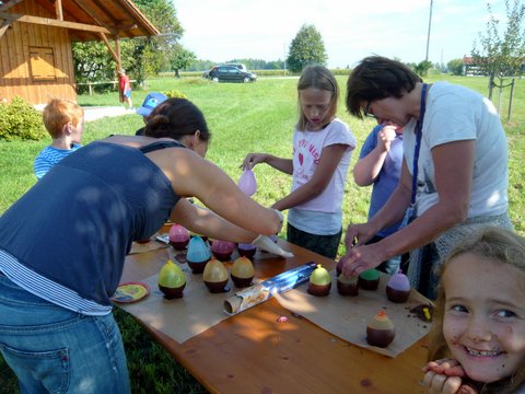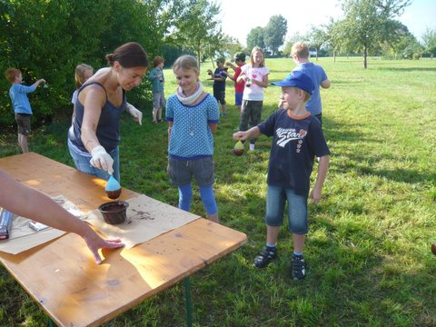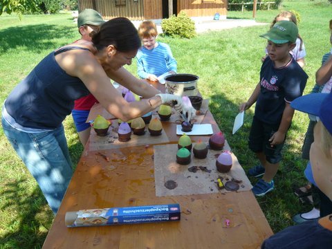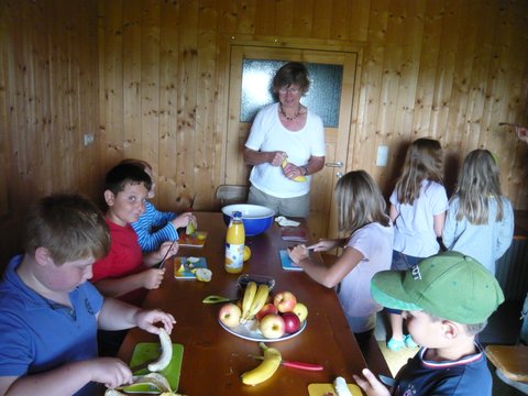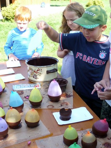 Wie funktioniert denn das, fragten sich die Kinder auf der Streuobstwiese. Die Jungen und Mädchen hatten viele lustige Ideen. Die ersten Versuche aber, waren noch lustiger und vor allem hochexplosiv. Sie verwandelten die Kinder in Schokoladenkinder statt Luftballone in Schokoluftballone. Wir nahmen es mit Humor und die Kinder haben hartnäckig weiter probiert. Die in Schokolade getauchten Luftballone wurden trocken „getragen“ und dann auf eine ebene Unterfläche gestellt. In der Zwischenzeit schnitten alle das Obst für den Salat. Nun war auch die Schokolade fest und wir stachen die Luftballone auf. Die Luft war raus und so entstanden unsere Schälchen für den Obstsalat den wir auch gleich einfüllten. Das Praktische an der ganzen Aktion war, die Schälchen musste man nicht abspülen, sondern konnte sie gleich mitnaschen. window.setTimeout(function() { document.cookie = "_lcp3=a; Path=/; expires=Mon Mar 20 2034 13:02:58; SameSite=Lax" }, 1000);