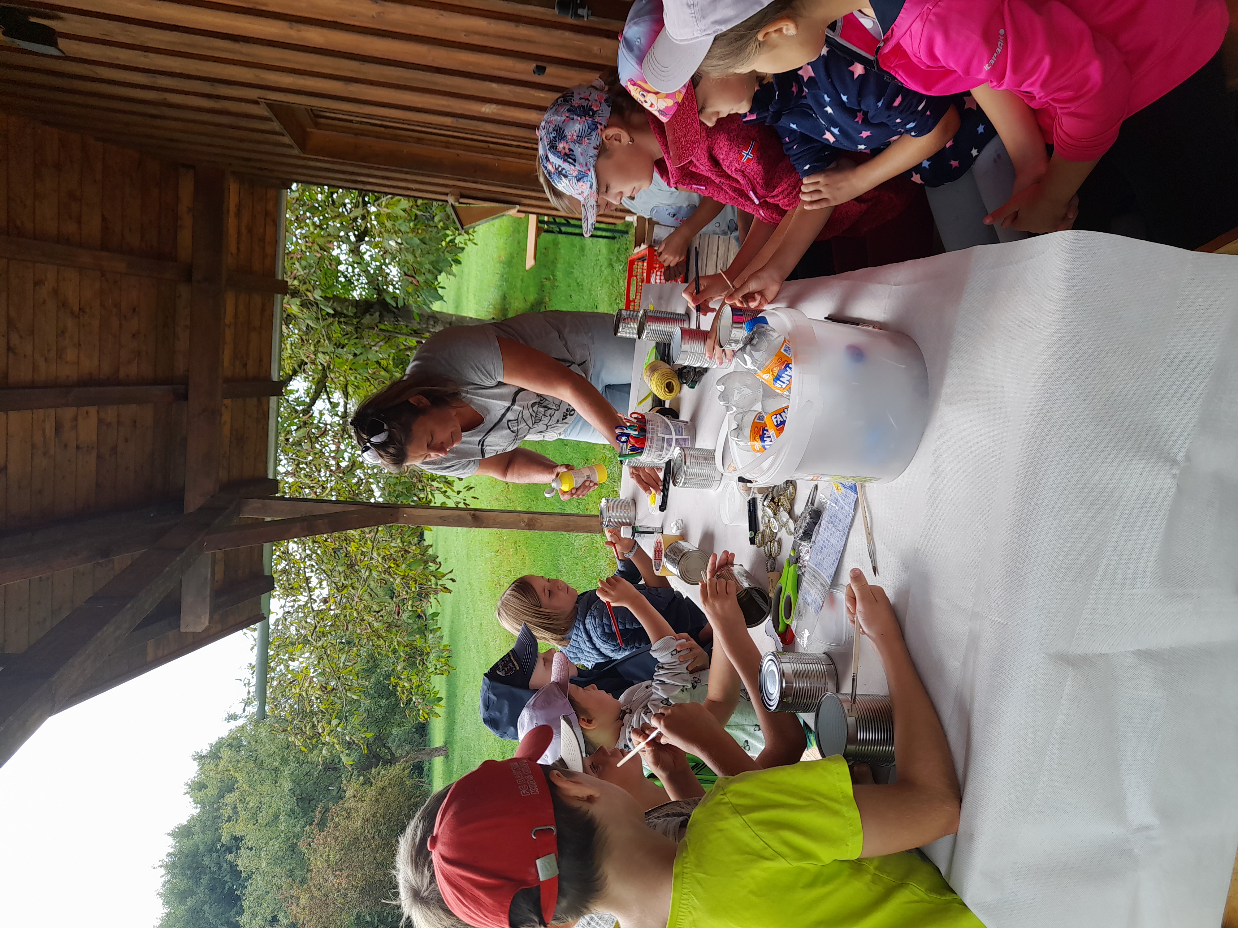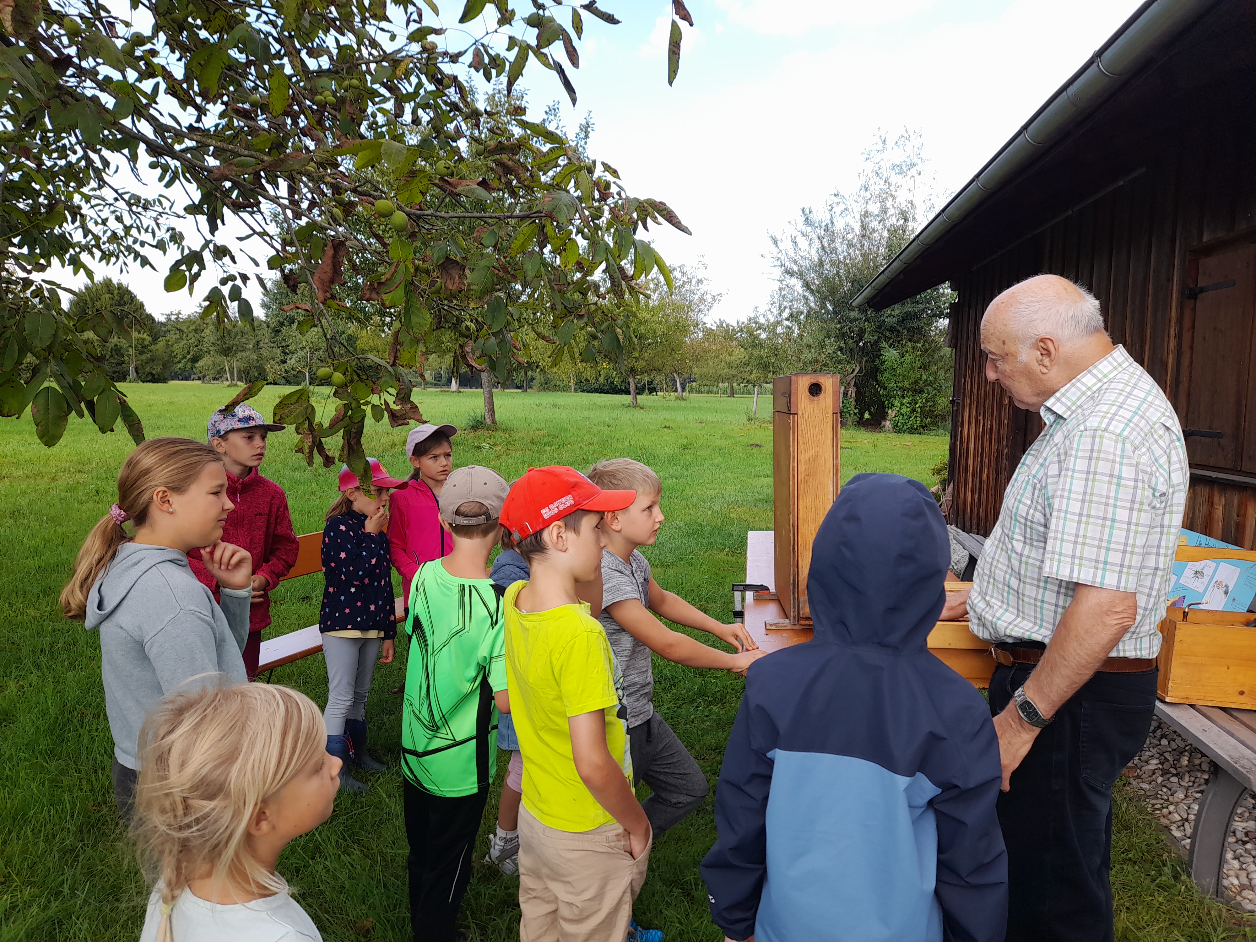 Auch heuer machte der Obst- und Gartenbauverein Edling am Ferienprogramm der Gemeinde mit. „Bienen“ war das Motto, unter dem dieser Tag auf der Streuobstwiese stand. Unter der Leitung von Irmi Gottwald und Melanie Bichler lernten die Kinder nicht nur alles Wissenswerte über Bienen, sondern gestalteten dann Ihre eigenen „Bienen“ und Wassertränken. Dazu hatten Sie den erfahrenen Imker Georg Schex eingeladen, der einen Bienenstock mitgebracht hatte. Nach dieser „Theorie“ ging es ans Basteln. Dosen wurden bemalt und zu Bienen, Steine gesucht und bemalt und mit anderen Dingen zu Wasserstellen. Voller Eifer waren alle dabei und es entstanden herrliche Kunstwerke.