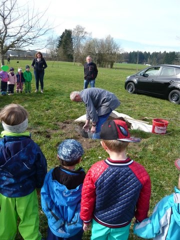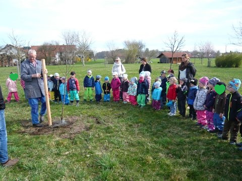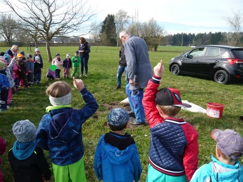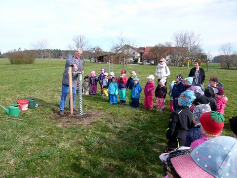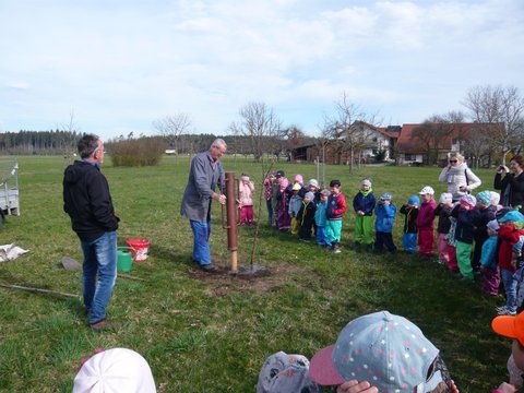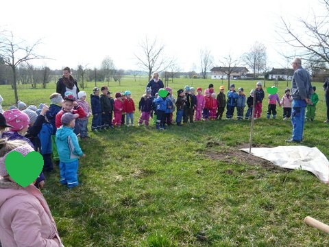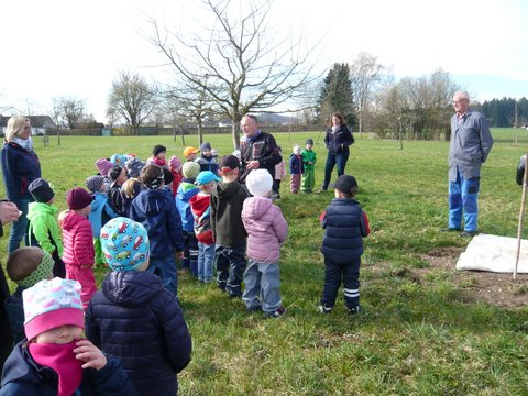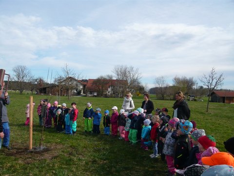 Der Gemeindekindergarten Schatztruhe fragte beim Gartenbauverein Edling nach, ob auch sie einen Baum auf der Streuobstwiese bekommen können, um beim Wachsen zuzusehen, ihn zu pflegen und im Herbst die Früchte zu ernten. Gerne wurde zugestimmt und somit wurden sie Baumpate für einen Apfelbaum auf der Streuobstwiese. Am Donnerstag, 4. April 2019 kamen die Kinder des Kindergartens mit ihren Betreuerinnen auf die Streuobstwiese um zuzusehen, wie ihr Apfelbaum gepflanzt wurde. Natürlich durfte anschließend ein Picknick nicht fehlen.