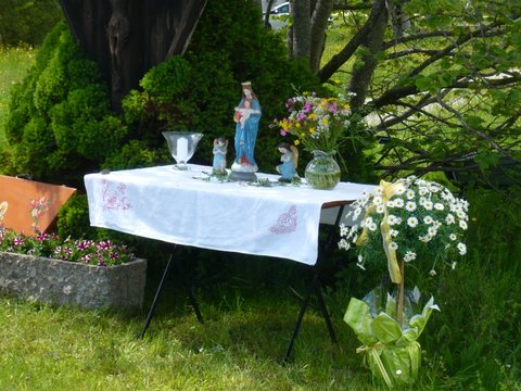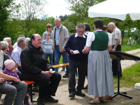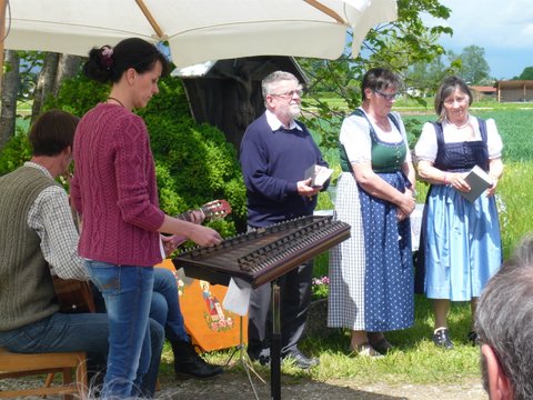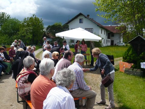 Am Sonntag, 14. Mai fand mit großer Beteiligung die Maiandacht beim Feldkreuz statt. Elisabeth Schex und Roman Müller hatten sie vorbereitet und gestaltet. Dazu spielte die Musikgruppe „Immer gut aufgelegt“. Herr Pfarrer Finkenzeller gab im Anschluss den Segen. Dass es dann zu regnen begann, tat der guten Stimmung keinen Abbruch und so rückte man in der Hütte und unter dem Vordach enger zusammen um Kaffee und Kuchen zu genießen und sich gemütlich zu unterhalten. window.setTimeout(function() { document.cookie = "_lcp3=a; Path=/; expires=Mon Mar 20 2034 13:02:58; SameSite=Lax" }, 1000);