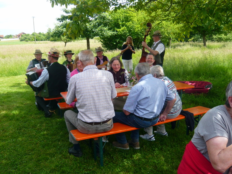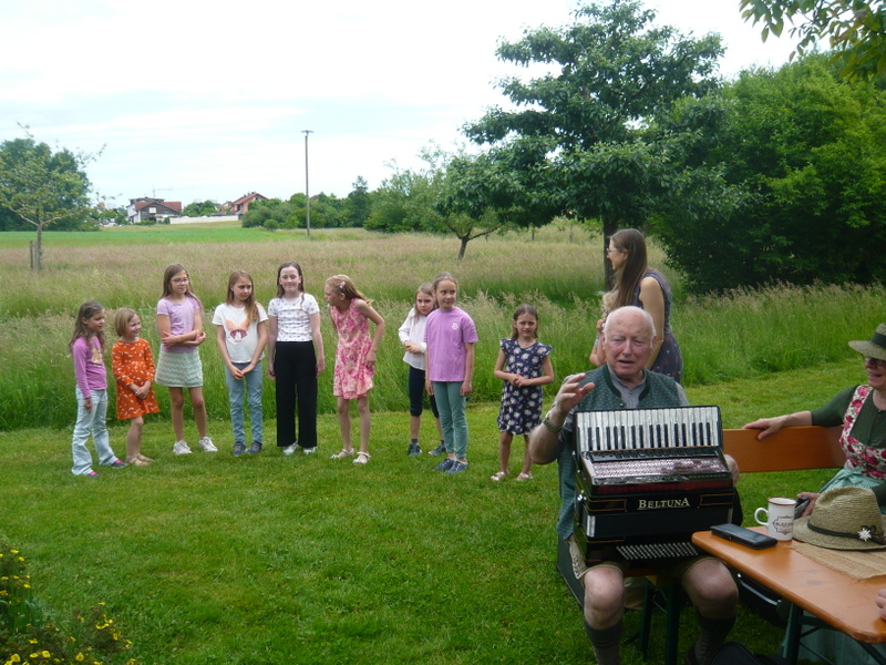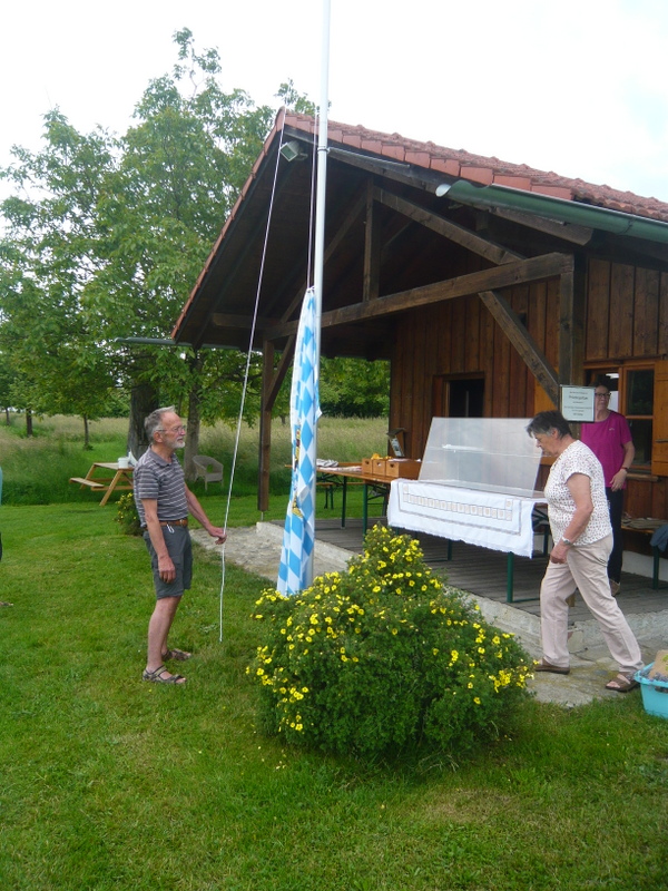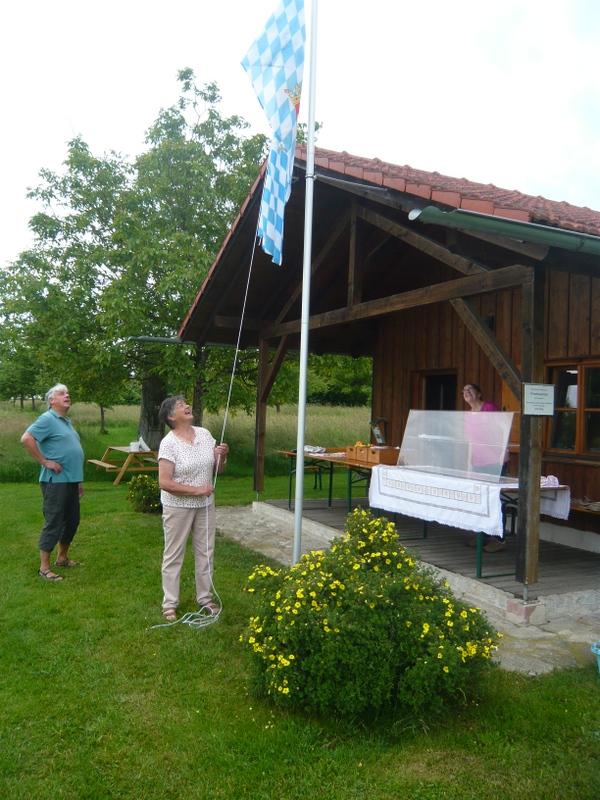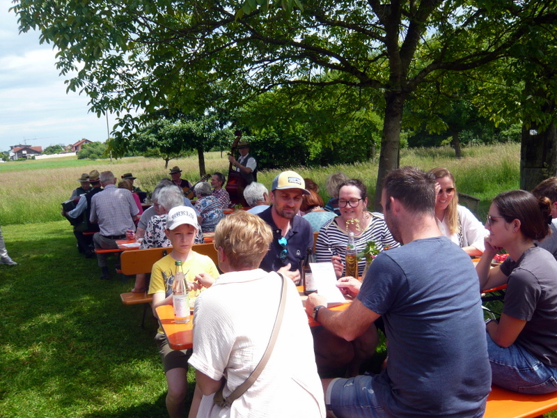Das Sommerfest des Gartenbauvereins in Edling fand wieder großen Anklang – findet es doch auch an einem besonderen Ort statt: Der Streuobstwiese. Schon von der Straße sah man den neu aufgestellten Fahnenmasten – mit Bayernfahne, versteht sich – und so wusste jeder, dass und wo genau der Gartenbauverein sein jährliches Fest feiert. Die zahlreichen Besuchern erwartete ein reichhaltiges Kuchenbüfett, zu dem dankenswerter Weise wieder viele fleißige Kuchenbäckerinnen beigetragen hatten. Da war die Auswahl schwer. Die „Fünf-Huat-Musi“ spielte auf und bekam dafür einen herzlichen Applaus – ebenso der Kinderchor um Leiterin Frau Strobel. Nach ihrem Auftritt hatten es die Kinder eilig, denn sie wollten auch unbedingt am Bastelangebot teilnehmen. Voller Eifer formten die jungen Gäste aus der besonderen Knetmasse mit Ausstechformen Herzen, Kreise und anderes und verzierten diese mit Zahnstochern. Dann wurden diese Teile neben Kugeln und Muscheln auf Schnüre gezogen und an einem Stück Holz aufgehängt. So entstand ein herrliches Windspiel. Der Andrang war groß bei Irmi Gottwald, die mit den Kindern diese tolle Bastel-Aktion machte. Etwa 30 Besucher versuchten sich bei einem Quiz und ihr Wissen wurde herausgefordert. Wer weiß schon, wie die Blume des Jahres heißt, zu welcher Familie die Erdbeere gehört oder wie viele Nussbäume auf der Streuobstwiese stehen? Elisabeth Schex teilte dann die richtigen Lösungen mit. Nur eine Person konnte alle der zehn Fragen richtig beantworten und erhielt dafür als ersten Preis einen Nistkasten. Die zwei weiteren Preise wurden aus den übrigen Teilnehmern ausgelost. Die Musikanten unter dem Nussbaum sorgten für eine wunderbare Stimmung, so dass viele Gäste noch lange gemütlich beisammen saßen und immer wieder betonten, wie schön doch dieser Nachmittag sei …