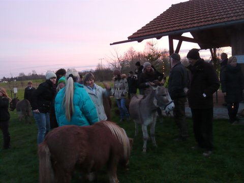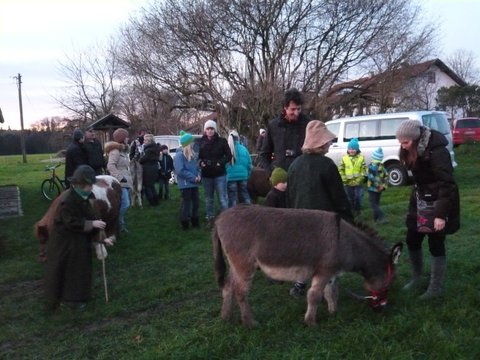 Seit vielen Jahren ist die Waldweihnacht des Obst- und Gartenbauverein Edling e.V. ein liebgewonnener Termin, um sich auf die staade Zeit vorzubereiten und der Hektik des Alltags zu entfliehen. So kamen am 21. Dezember um 16.30 Uhr sowohl Eltern mit ihren Kindern aber auch viele Erwachsene zu dieser besinnlichen Waldweihnachtsfeier ganz ohne Kommerz dafür mit Musik und bei Feuerschein auf die Streuobstwiese. Eine Besonderheit waren heuer die Tiere. Esel und Ponys, dazu einige Ziegen mit Glöckchen am Hals kamen auf die festlich beleuchtete Hütte zu und ließen sich gerne von den Kindern streicheln. Inzwischen war es dunkel geworden, das Feuer brannte, der Christbaum und viele Lichter leuchteten. Zu dieser ganz besonderen Stimmung trugen auch die beiden jungen Musiker bei, die mit ihrem Trompetenspiel auf die Weihnachtszeit einstimmten. Gespannt lauschten dann die Kinder der Weihnachtsgeschichte bevor sie sich auf den Weg durch die mit Windlichter erhellte Wiese machten, um den Wildtiere und Vögel mit Äpfel und Meisenknödel zu beschenken. Danach schmeckten natürlich Lebkuchen und der Kinderpunsch, besonders da er direkt über dem Feuer erhitzt wurde und auch die Erwachsenen stärken sich mit Glühwein, bevor sie sich nach dieser besinnlichen Feier auf dem Heimweg machten. Das gespendete Geld erhält eine örtliche, soziale Einrichtung. window.setTimeout(function() { document.cookie = "_lcp3=a; Path=/; expires=Mon Mar 20 2034 13:02:58; SameSite=Lax" }, 1000);